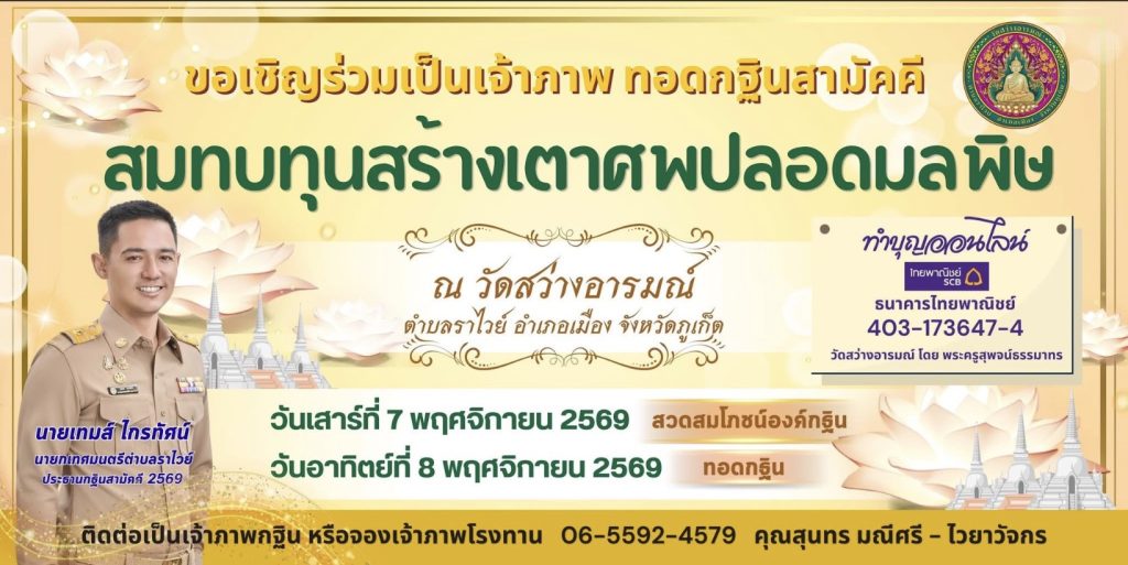 โดยมี นายเทมส์ ไกรทัศน์ นายกเทศมนตรีตำบลราไวย์ ประธานกฐินสามัคคี 2569