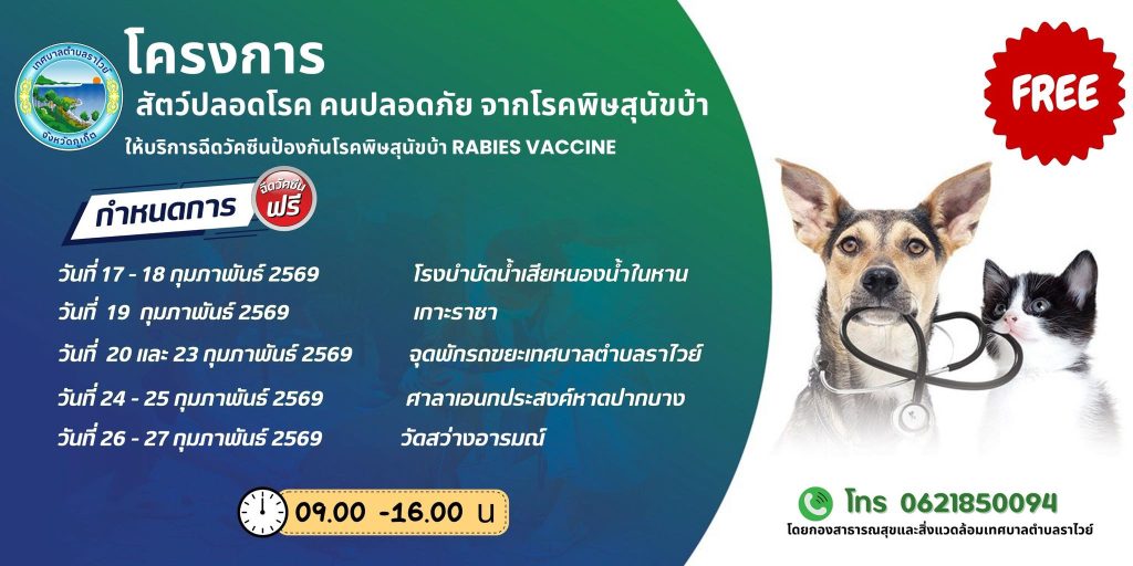 บริการฉีดวัคซีนป้องกันโรคพิษสุนัขบ้า ฟรี