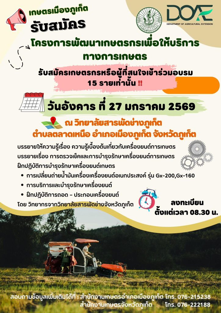 สำนักงานเกษตรอำเภอเมืองภูเก็ต รับสมัครเข้าร่วมโครงการพัฒนาเกษตรกรเพื่อให้บริการทางการเกษตร