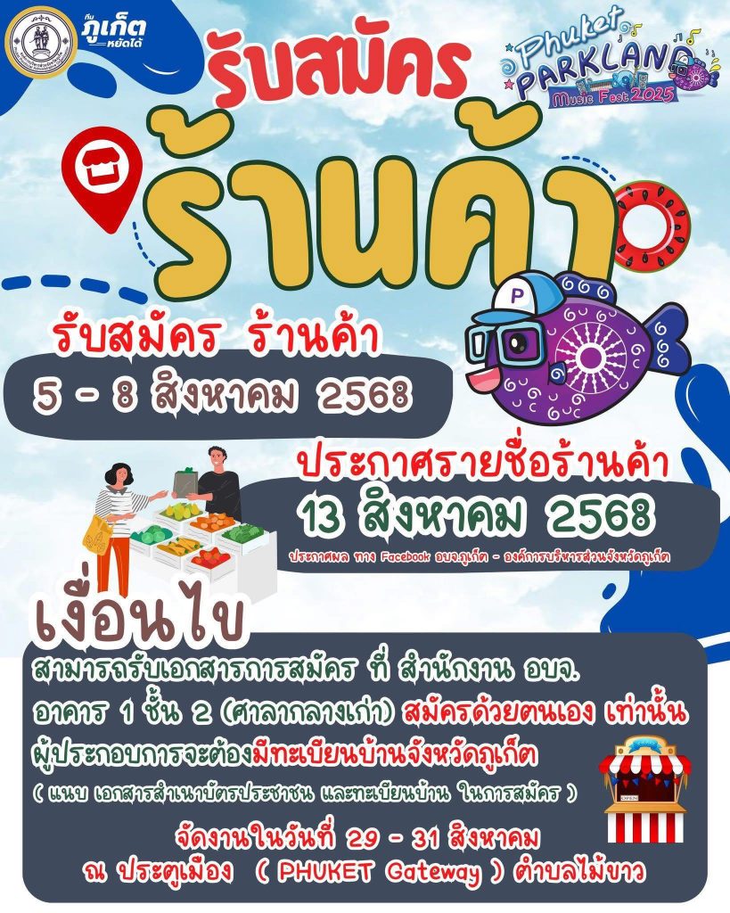 เปิดรับสมัครร้านค้า ชวนพ่อค้าแม่ค้าชาวภูเก็ต มาเป็นส่วนหนึ่งของงานใหญ่ Phuket Parkland Music Fest 2025