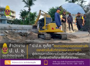 ผู้ประกอบการให้ความร่วมมือดำเนินการรื้อถอนสิ่งปลูกสร้างในบริเวณพื้นที่สาธารณะออก โดย “ป.ป.ช.ภูเก็ต” ติดตามเชิงรุกกรณีก่อสร้างสิ่งปลูกสร้างในพื้นที่สาธารณะ หาดบางเทา หมู่ที่ 3 ตำบลเชิงทะเล อำเภอถลาง จังหวัดภูเก็ต